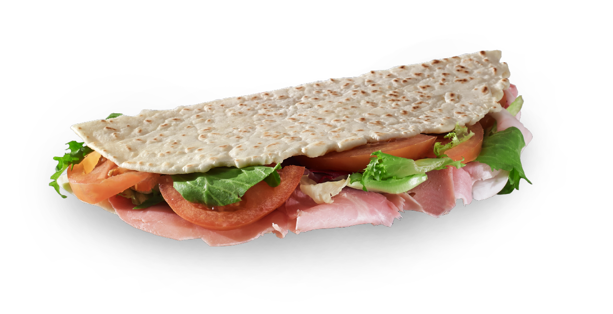 Piadina Romagnola g.g.A. mit nativem Olivenöl extra: für diejenigen, die nicht auf das typische romagnolische Gericht schlechthin verzichten möchten, in einer leichteren Variante. Hervorragend gefüllt mit Speck und gegrilltem Gemüse oder Pilzen.
